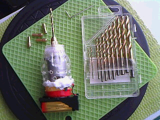 より費用を抑えるには、DCモータを、もう少しスペックダウンするか、それに加え、ドリルビットセットではなく、カップリング継手(カプラー)を使い、ドリル刃を付ける方法もあります。