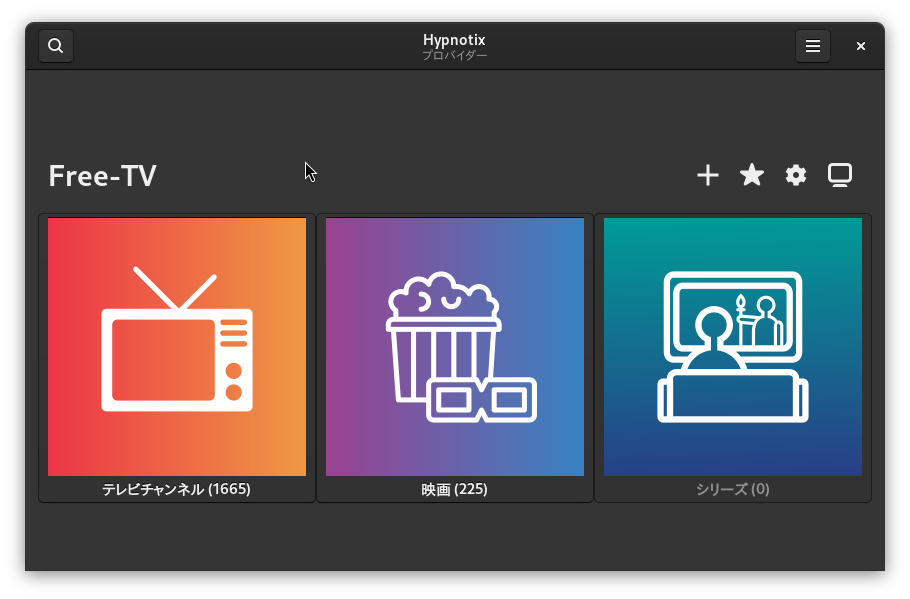 Hypnotix標準プロバイダーとしてFree-TVが収録済み。
